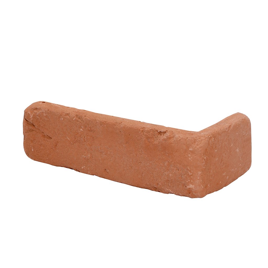 Sádrový rohový obklad LOFT 2 v červeném odstínu cihly. Související produkt obkladu, který sjednocuje napojení mezi stěnou a vnějším rohem. Vhodný pro interiér, určený ke spárování.